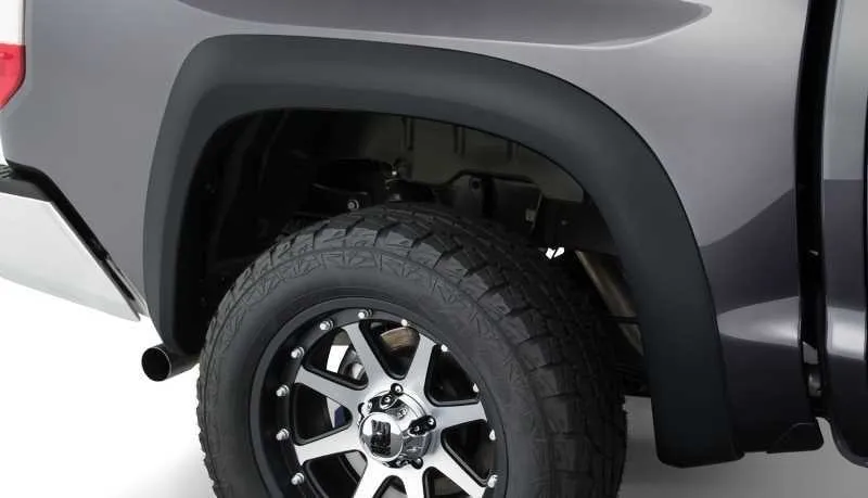 You've equipped your vehicle with oversize wheels and tires for serious off-road traction and clearance. Now you need extra tire coverage to protect your rig's body and maybe even comply with local laws. Bushwacker Extend-A-Fender Flares deliver premium-grade protection and style matched to oversized tires, yet as tough as they are, they go on easily with no drilling required. You can install them in minutes and enjoy them for years. Our exclusive Dura-Flex 2000 material is designed for added durability and flexibility with built-in UV protection. Your Extend-A-Fender Flares resist chalking, cracking, and warping, whether you leave them with their OEM-style matte black finish or paint them for a totally personalized look. Either way, your truck will look factory-equipped for your off-road tires. Extend-A-Fender Flares go on easy, perform tough, and look great.