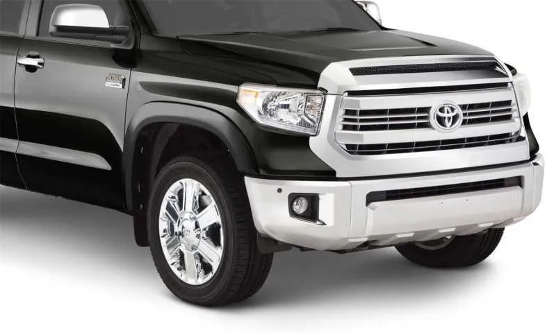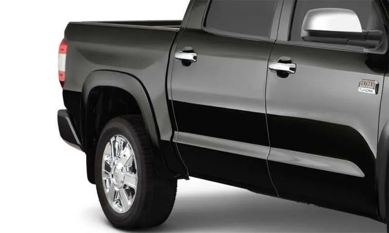Give your truck the appearance of an upmarket trim level with Bushwacker "OE" Style Fender Flares. They install in minutes with no drilling. And, they're designed specifically to complement your vehicle's styling, so it looks like it came from the factory that way, with a fit, finish, and level of protection that exceeds original equipment. These flares are now available pre-finished to match the paint on your new truck or SUV, plus they have the edge trim and stainless steel hardware pre-installed for quick and easy installation and a perfect fit-no drilling required. Made from sturdy Dura-Flex 2000 material, these flares are warp-resistant and tailor made for each application. Despite their bolted-on appearance, these flares install easily without drilling for a secure fit. And since they're ready to install out of the box, there's no waiting on paint, and no hassle with installation.
