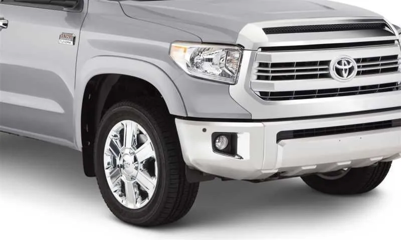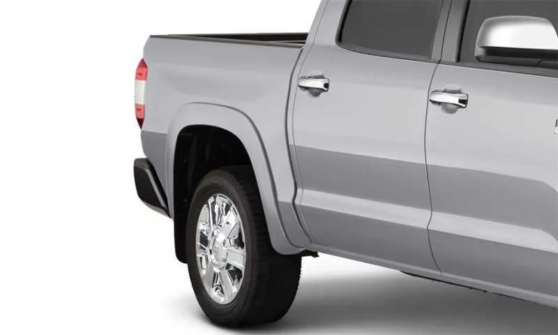 Give your truck the appearance of an upmarket trim level with Bushwacker "OE" Style Fender Flares. They install in minutes with no drilling. And, they're designed specifically to complement your vehicle's styling, so it looks like it came from the factory that way, with a fit, finish, and level of protection that exceeds original equipment. These flares are now available pre-finished to match the paint on your new truck or SUV, plus they have the edge trim and stainless steel hardware pre-installed for quick and easy installation and a perfect fit-no drilling required. Made from sturdy Dura-Flex 2000 material, these flares are warp-resistant and tailor made for each application. Despite their bolted-on appearance, these flares install easily without drilling for a secure fit. And since they're ready to install out of the box, there's no waiting on paint, and no hassle with installation.