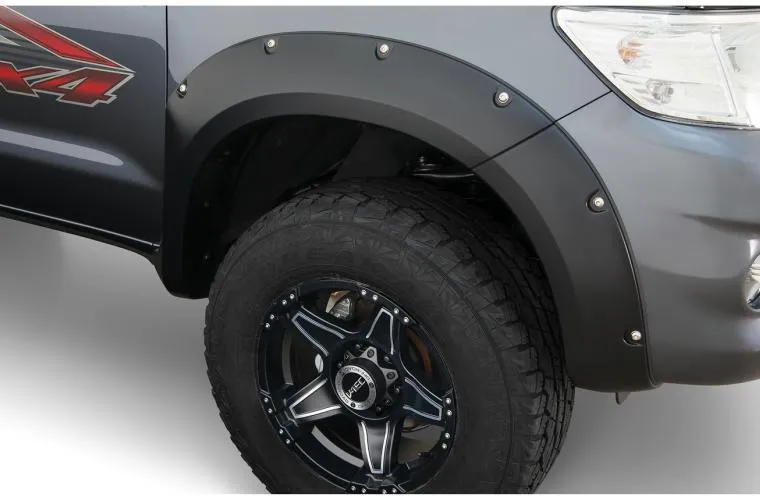 Bushwacker Pocket Style® Fender Flares are a Bushwacker original and an off-road icon with their recessed stainless steel bolts and massive presence. These flares are custom designed to complement oversized tires while providing premium tire protection. When you need maximum tire coverage with minimum time and effort, it's in the pocket. Pocket Style Fender Flares from Bushwacker.