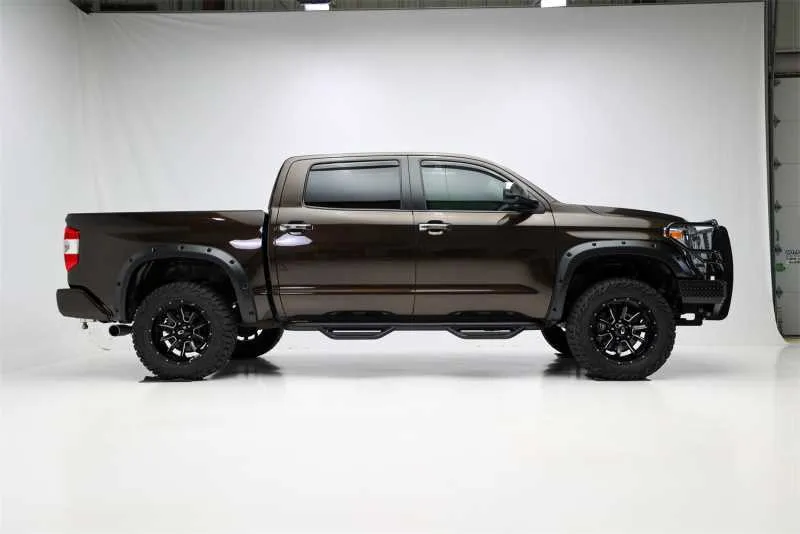 Bushwacker Forge(R) Fender Flares are new to the Bushwacker line up and offer the popular rivet style with a rugged textured finish. The new Forge flare comes with black rivet hardware for the to highlight the look of a bolted-on flare. These flares complement oversized tires while providing tire protection. Made with our durable ABS Material it provides a dense, hard and scratch-resistant surface, flexible enough to bend without breaking.