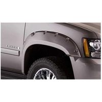 With their recessed stainless steel bolts and massive presence, Pocket Style Fender Flares are a Bushwacker original and an off-road icon. They give you the hard-core look of bolt-on flares, with no body-side sheet metal drilling required. Pocket Style Fender Flares are custom-designed for your vehicle to complement oversized tires and high-clearance lift kits. You can mount them right out of the box with their tough, OEM-style matte black finish they're UV protected so they won't chalk. You can also paint them to match or accent the body color for a factory-custom look. Pocket Style Fender Flares are made from our thick, warp-resistant Dura-Flex 2000 material and tailor-made for added durability and flexibility on the trail. When you need maximum tire coverage with minimum time and effort, it's in the pocket. Pocket Style Fender Flares from Bushwacker.
