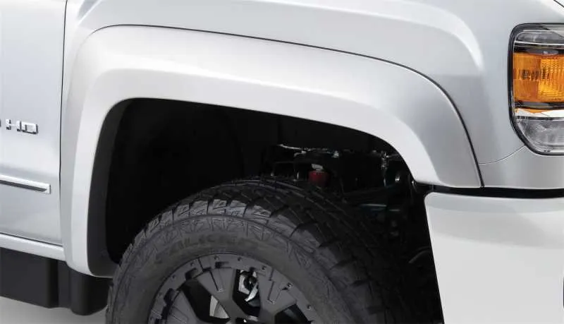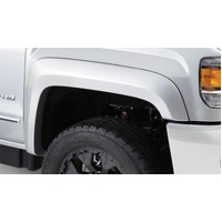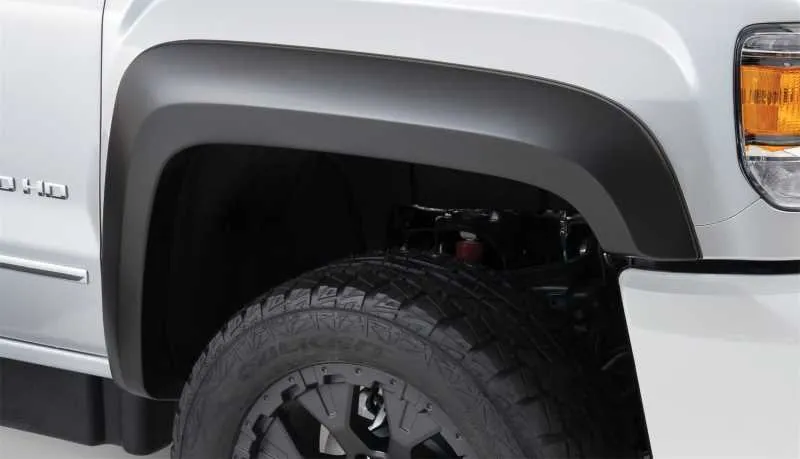 You've equipped your vehicle with oversize wheels and tires for serious off-road traction and clearance. Now you need extra tire coverage to protect your rig's body and maybe even comply with local laws. Bushwacker Extend-A-Fender Flares deliver premium-grade protection and style matched to oversized tires, yet as tough as they are, they go on easily with no drilling required. You can install them in minutes and enjoy them for years. Our exclusive Dura-Flex 2000 material is designed for added durability and flexibility with built-in UV protection. Your Extend-A-Fender Flares resist chalking, cracking, and warping, whether you leave them with their OEM-style matte black finish or paint them for a totally personalized look. Either way, your truck will look factory-equipped for your off-road tires. Extend-A-Fender Flares go on easy, perform tough, and look great.