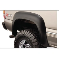 You've equipped your vehicle with oversize wheels and tires for serious off-road traction and clearance. Now you need extra tire coverage to protect your rig's body and maybe even comply with local laws. Bushwacker Extend-A-Fender Flares deliver premium-grade protection and style matched to oversized tires, yet as tough as they are, they go on easily with no drilling required. You can install them in minutes and enjoy them for years. Our exclusive Dura-Flex 2000 material is designed for added durability and flexibility with built-in UV protection. Your Extend-A-Fender Flares resist chalking, cracking, and warping, whether you leave them with their OEM-style matte black finish or paint them for a totally personalized look. Either way, your truck will look factory-equipped for your off-road tires. Extend-A-Fender Flares go on easy, perform tough, and look great.