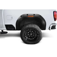 With their recessed stainless steel bolts and massive presence, Pocket Style Fender Flares are a Bushwacker original and an off-road icon. They give you the hard-core look of bolt-on flares, with no body-side sheet metal drilling required. Pocket Style Fender Flares are custom-designed for your vehicle to complement oversized tires and high-clearance lift kits. You can mount them right out of the box with their tough, OEM-style matte black finish they're UV protected so they won't chalk. You can also paint them to match or accent the body color for a factory-custom look. Pocket Style Fender Flares are made from our thick, warp-resistant Dura-Flex 2000 material and tailor-made for added durability and flexibility on the trail. When you need maximum tire coverage with minimum time and effort, it's in the pocket. Pocket Style Fender Flares from Bushwacker.