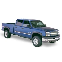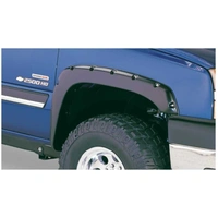 With their recessed stainless steel bolts and massive presence, Pocket Style Fender Flares are a Bushwacker original and an off-road icon. They give you the hard-core look of bolt-on flares, with no body-side sheet metal drilling required. Pocket Style Fender Flares are custom-designed for your vehicle to complement oversized tires and high-clearance lift kits. You can mount them right out of the box with their tough, OEM-style matte black finish they're UV protected so they won't chalk. You can also paint them to match or accent the body color for a factory-custom look. Pocket Style Fender Flares are made from our thick, warp-resistant Dura-Flex 2000 material and tailor-made for added durability and flexibility on the trail. When you need maximum tire coverage with minimum time and effort, it's in the pocket. Pocket Style Fender Flares from Bushwacker.