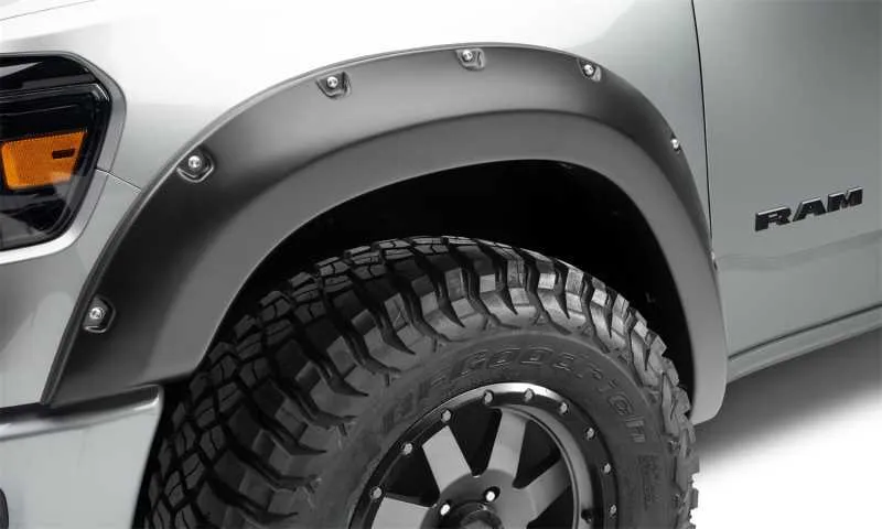 With their recessed stainless steel bolts and massive presence, Pocket Style Fender Flares are a Bushwacker original and an off-road icon. They give you the hard-core look of bolt-on flares, with no body-side sheet metal drilling required. Pocket Style Fender Flares are custom-designed for your vehicle to complement oversized tires and high-clearance lift kits. You can mount them right out of the box with their tough, OEM-style matte black finish they're UV protected so they won't chalk. You can also paint them to match or accent the body color for a factory-custom look. Pocket Style Fender Flares are made from our thick, warp-resistant Dura-Flex 2000 material and tailor-made for added durability and flexibility on the trail. When you need maximum tire coverage with minimum time and effort, it's in the pocket. Pocket Style Fender Flares from Bushwacker.