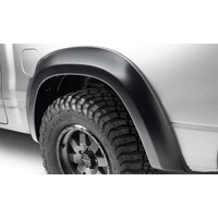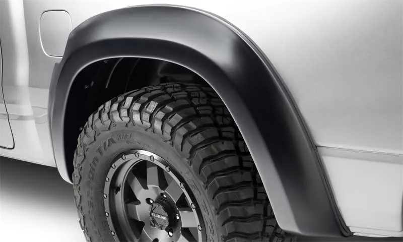 You've equipped your vehicle with oversize wheels and tires for serious off-road traction and clearance. Now you need extra tire coverage to protect your rig's body and maybe even comply with local laws. Bushwacker Extend-A-Fender Flares deliver premium-grade protection and style matched to oversized tires, yet as tough as they are, they go on easily with no drilling required. You can install them in minutes and enjoy them for years. Our exclusive Dura-Flex 2000 material is designed for added durability and flexibility with built-in UV protection. Your Extend-A-Fender Flares resist chalking, cracking, and warping, whether you leave them with their OEM-style matte black finish or paint them for a totally personalized look. Either way, your truck will look factory-equipped for your off-road tires. Extend-A-Fender Flares go on easy, perform tough, and look great.