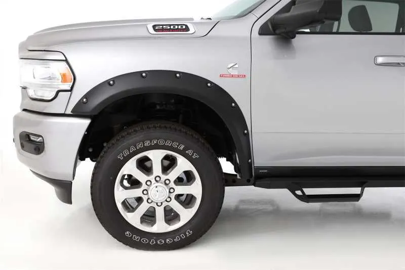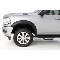 With their recessed stainless steel bolts and massive presence, Pocket Style Fender Flares are a Bushwacker original and an off-road icon. They give you the hard-core look of bolt-on flares, with no body-side sheet metal drilling required. Pocket Style Fender Flares are custom-designed for your vehicle to complement oversized tires and high-clearance lift kits. You can mount them right out of the box with their tough, OEM-style matte black finish they're UV protected so they won't chalk. You can also paint them to match or accent the body color for a factory-custom look. Pocket Style Fender Flares are made from our thick, warp-resistant Dura-Flex 2000 material and tailor-made for added durability and flexibility on the trail. When you need maximum tire coverage with minimum time and effort, it's in the pocket. Pocket Style Fender Flares from Bushwacker.