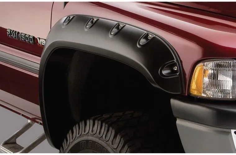 Bushwacker Pocket Style® Fender Flares are a Bushwacker original and an off-road icon with their recessed stainless steel bolts and massive presence. These flares are custom designed to complement oversized tires while providing premium tire protection. When you need maximum tire coverage with minimum time and effort, it's in the pocket. Pocket Style Fender Flares from Bushwacker.