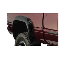 With their recessed stainless steel bolts and massive presence, Pocket Style Fender Flares are a Bushwacker original and an off-road icon. They give you the hard-core look of bolt-on flares, with no body-side sheet metal drilling required. Pocket Style Fender Flares are custom-designed for your vehicle to complement oversized tires and high-clearance lift kits. You can mount them right out of the box with their tough, OEM-style matte black finish they're UV protected so they won't chalk. You can also paint them to match or accent the body color for a factory-custom look. Pocket Style Fender Flares are made from our thick, warp-resistant Dura-Flex 2000 material and tailor-made for added durability and flexibility on the trail. When you need maximum tire coverage with minimum time and effort, it's in the pocket. Pocket Style Fender Flares from Bushwacker.