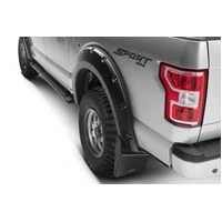 Bushwacker , the off-road icon and originator of the bolt-on fender flare, introduces an innovative new patent pending Trail Armor Mud Flap. The new Trail Armor Mud Flap is the perfect fit for the Pocket Style Flare and gives you the comfort and protection you need for whatever the road throws at you. The ABS construction provides flexible protection that attaches to the flare. The perfect complement for the Pocket Style flare this one-of-a-kind look combines to give you protection on and off road with easy installation. The Trail Armor Mud Flaps provide an additional 10" of drop and 10" of width in tire coverage. The Trail Armor Mud Flaps are sold in pairs and are launching for all current model truck applications. As with all Bushwacker products, these are backed by an industry leading warranty with the quality you expect from the originator of the Fender Flare.