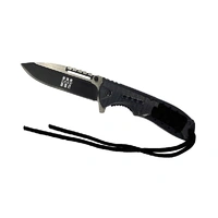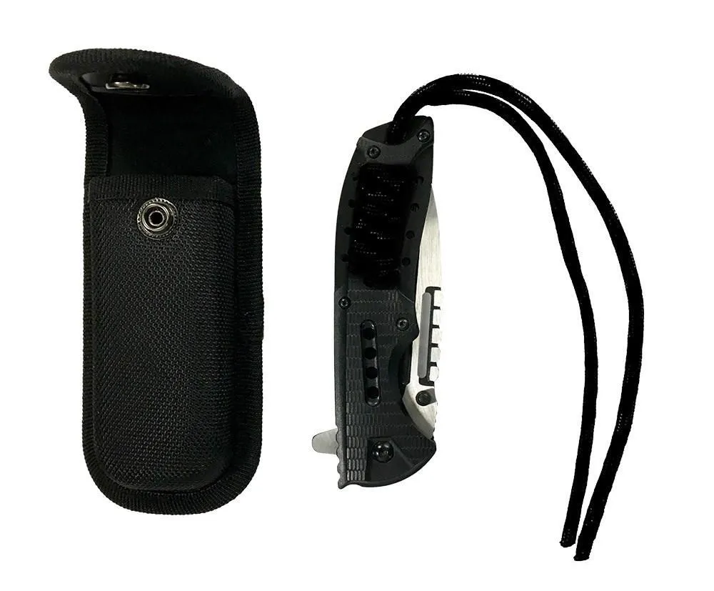 CAOS TACTICAL Folding Survival Knife comes complete with paracord rope embedded in the handle and a quality nylon belt pouch. This Folding Survival Knife with pocket clip and lanyard is equipped with a thumb stud for opening and two-part locking mechanism. The handle is made of durable plastic with an embedded non-slip design. A solid general-purpose knife that comes into its own as a Survival Knife. Built to work and can be trusted when camping, hiking, hunting or in general outdoor and survival emergencies.