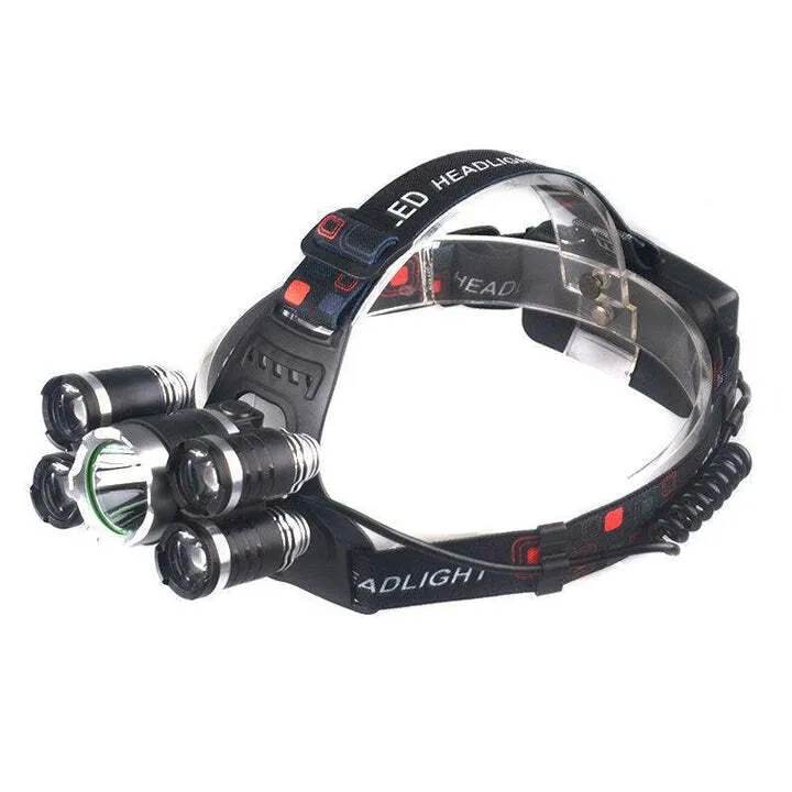 Rechargeable 1200 lumens 5 LED Headtorch Durable ABS plastic + nylon head band construction.