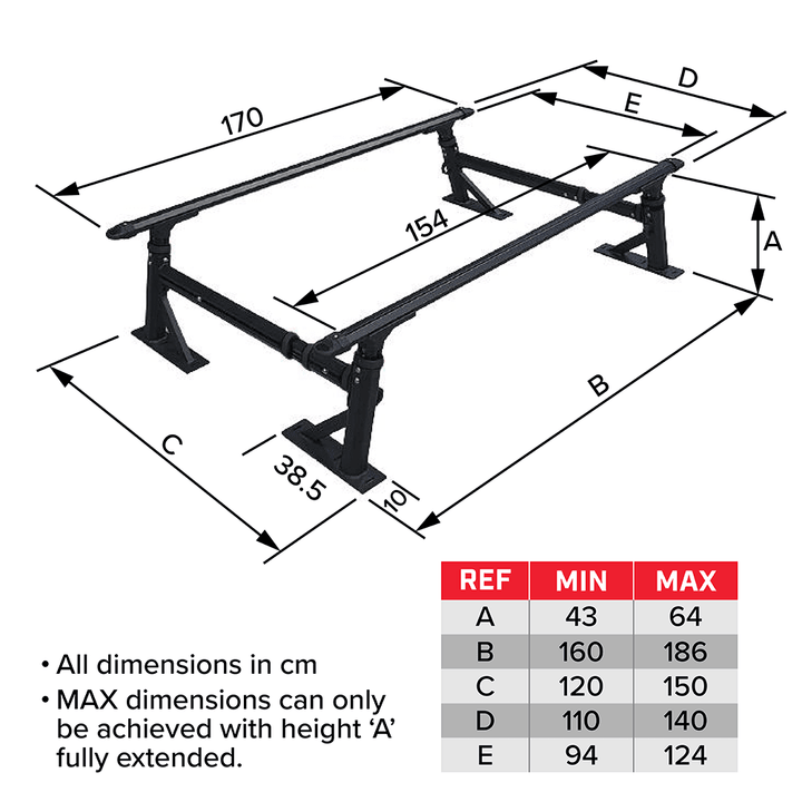 Roof Top Tent Complete Tilt System - Full kit, Baja Tub Rack