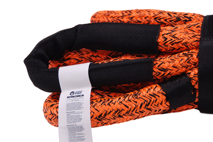 The Carbon Offroad Monkey Fist Kinetic Recovery Rope is a Nylon66(polyamide) double braided core and sheath rope with a specific gravity of 1.21. It is specifically treated with a special coating of the core fibre and sheath fibre which provides a 15% increase in abrasion resistance over similar ropes without the coating.