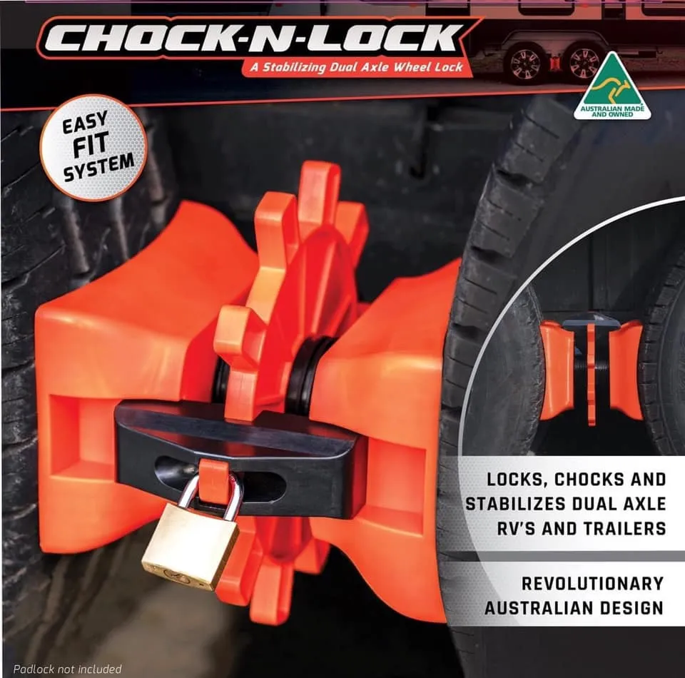 The Explore™ Chock 'n Lock is a revolutionary Australian Made and Owned innovation that locks, chocks, and stabilises dual axle caravans and trailers.