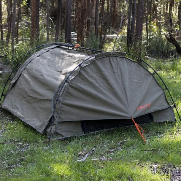 With two massive super-fine mesh doors and two zip down ventilation windows with storm flaps, this swag has unparalleled ventilation, keeping you cool while ensuring you’re well protected from the elements all year round. The canvas storm covers can either be rolled up or converted to awnings, giving you extra shade and protection in all weather conditions.