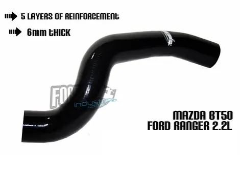 This pipe is a direct replacement for the passenger side intercooler hose that is known to split apart and expand under boost On the 2012+ Ranger and BT50. Our pipe is 6mm thick and has 5 layers of reinforcement to make it considerably stronger than the factory pipe.