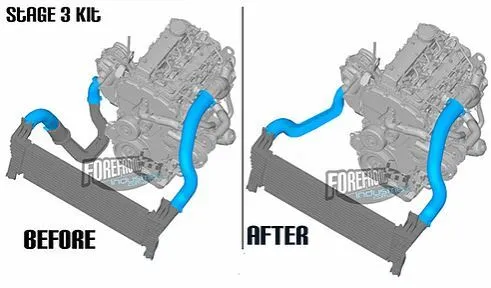 NOTE: This kit uses a new design of piping on the drivers side and is harder to fit then our stage 1 and 2 kits. The fitment of this kit should only be attempted by professionals or experienced fitters.