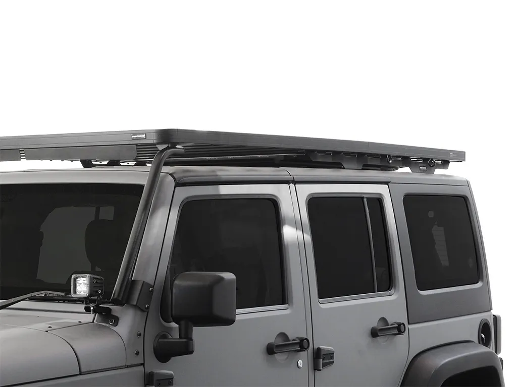 This Slimline II rack kit contains all the components needed to mount the Slimline II cargo carrying rack to a Jeep JK 4 door 2007-2018 including the Slimline II Tray (1425mm x 2368mm), the Jeep Extreme Mounting System and a Wind Deflector. Drilling is required for installation.