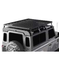 This 1964mm/77.3" long full-size Slimline II cargo carrying roof rack kit for the Land Rover Defender 90 contains Slimline II Tray and Wind Deflector, as well as 8 Gutter Mount legs for mounting the Tray to the vehicle. This taller kit has space for mounting the Front Runner tables or other compatible accessories under the rack. It installs easily with no drilling required.