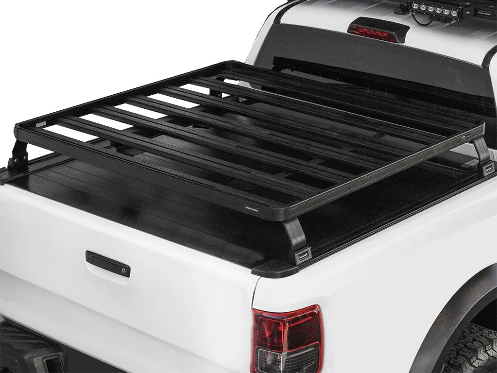 This kit creates a full-size rack that sits above your Pickup Truck's load bed when fitted with a Roll Top Cover. This Slimline II cargo carrying rack kit contains the Slimline II tray (1425mm x 1156mm) and 4 Pickup Roll Top Leg Mounts that fit into the existing factory/OEM tracks in your Roll Top Cover.