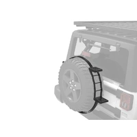 Convenient means of reaching your roof rack.Attaches to rear mounted spare wheel using heavy duty black ratchet strap provided.Allows effortless access to Roof Racks.Black powder coated high strength steel frame with non-slip tread plates.Fits wheel sizes from 24" to 35". No drilling, no tools -- just wrap, ratchet tight, and step up.Can be used to secure the Spare Tire Mount Braai/BBQ Grate to your vehicles spare wheel.