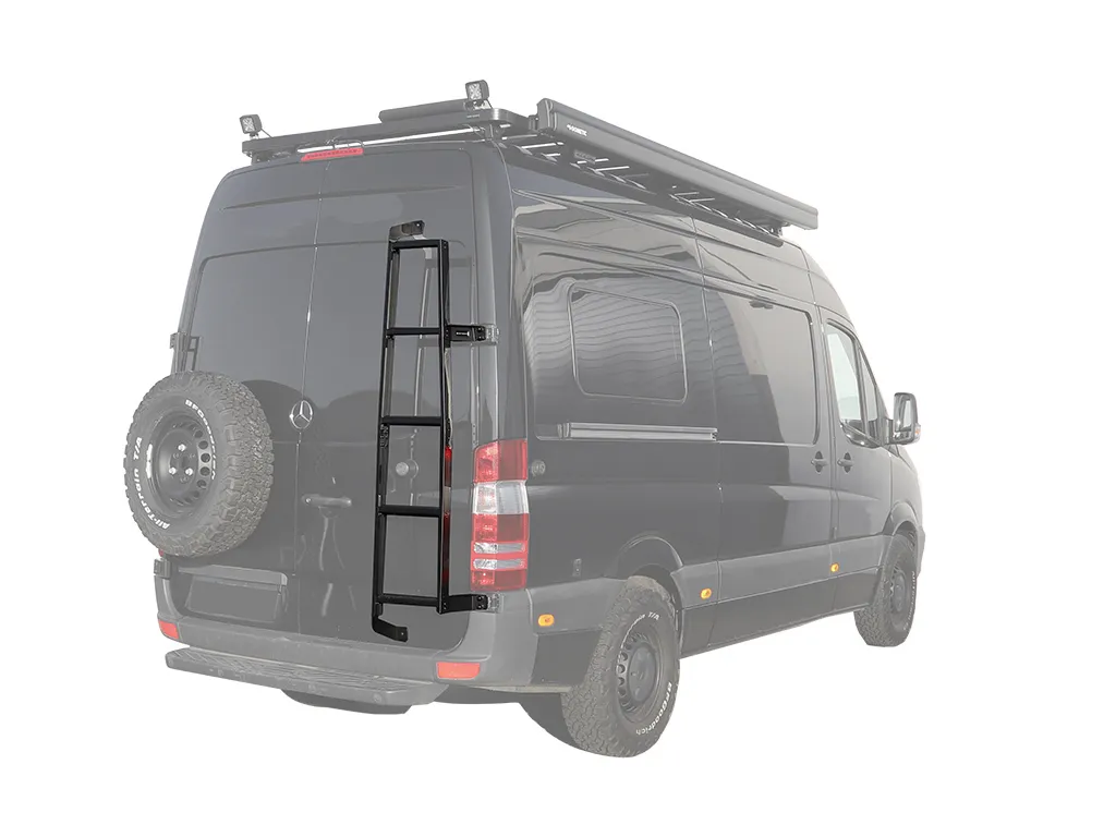 • Steps have rubber inserts for added grip when reaching on top of the Sprinter vans roof rack.
