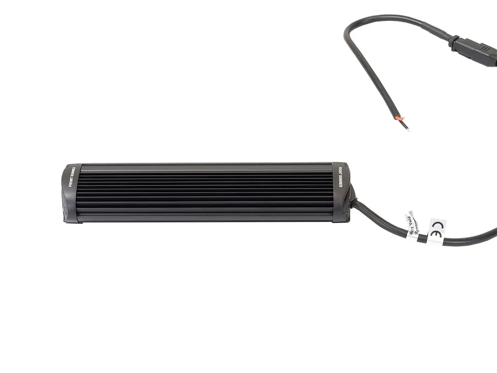 Six high-performance LEDs provide better visibility with 2520 raw lumen and 6000 kelvin color. Provides 120 degree flood beam pattern for close but wide range illumination immediately surrounding the vehicle. This auxiliary light is equipped with a robust polycarbonate lens set in a die cast aluminum housing. The 12V/24V LED Light Bar is versatile in application and is not limited to automotive use only. Expected LED life of 30,000 hours. Secures to your Front Runner roof rack with the .