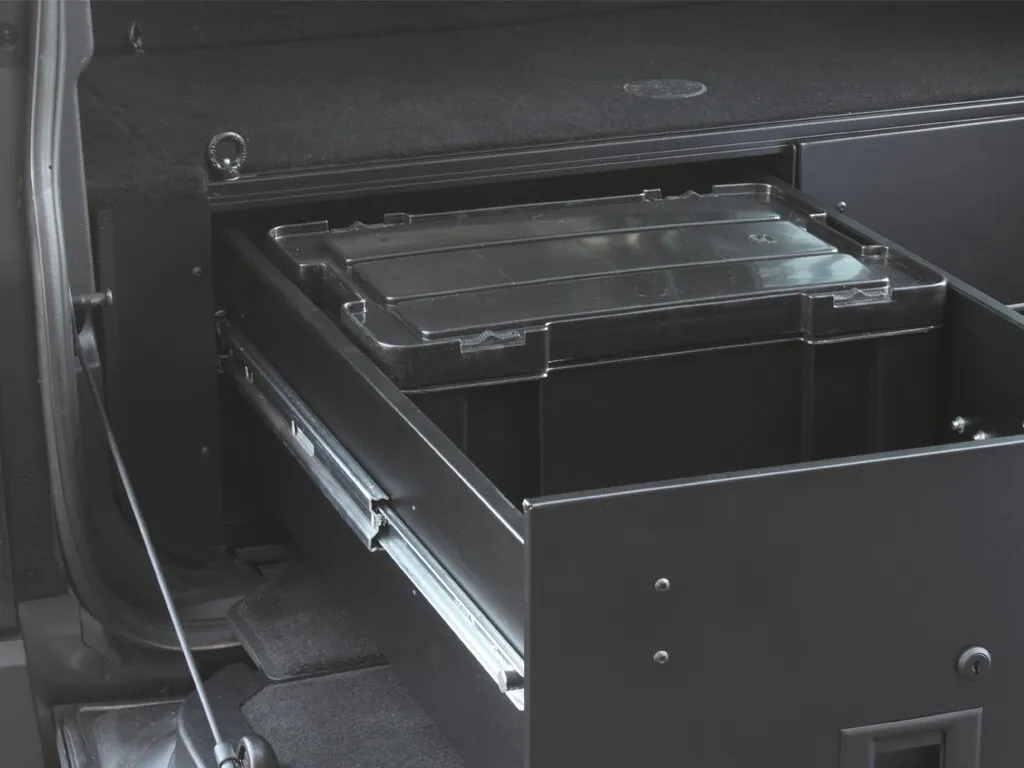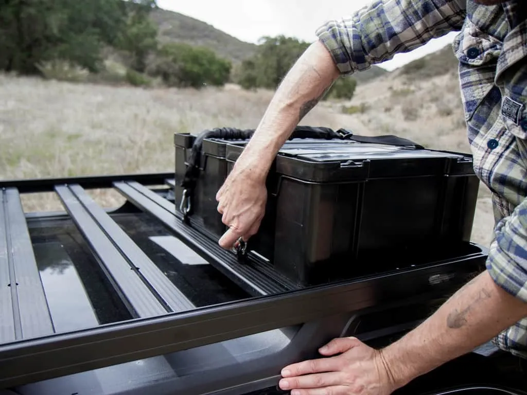 These plastic compact sized storage boxes are easy to arrange in a cargo bed and vertical-sided to avoid wasted space. The nesting lids design allows the Front Runner Cub Packs to stack securely to each other.Made from black, high strength plastic.More compact than the Wolf Pack and Wolf Pack Pro.Integrated grips for easy carrying.Versatile.Suitable for exterior storage. For even greater protection on your vehicle, store in a Typhoon Bag.Use in conjunction with Storage Box Foam Dividers or Stratchits as well as Black Tie Down Rings / Eye Nuts for a safe and secure roof rack storage solution.Front Runner storage systems are configured around the Wolf Pack , Wolf Pack Pro and Cub Pack sizes to allow a comprehensive and practical storage solution.