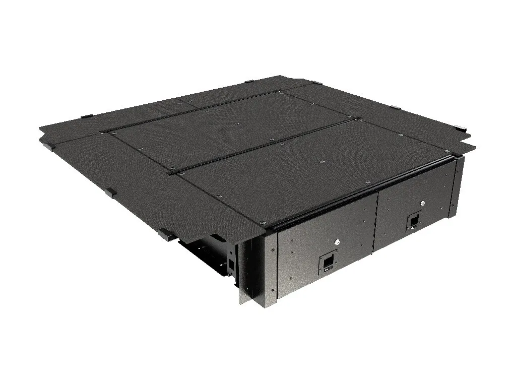 All Front Runner Storage Systems are backed by a 2 year warranty.*Please Note: Cub Packs and Flatpack Storage Boxes are not included when purchasing this Drawer System and are sold separately.Note: This Drawer Kit is not suitable for models with drop in plastic bed liner. The Deck Completion Set for this drawer kit requires modification when installed with an existing plastic load liner.