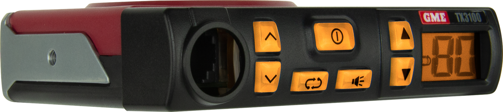 The TX3100DP, with its front mounted controls, is designed for unobtrusive mounting in modern vehicles and features a built-in speaker housed within an extremely compact case.