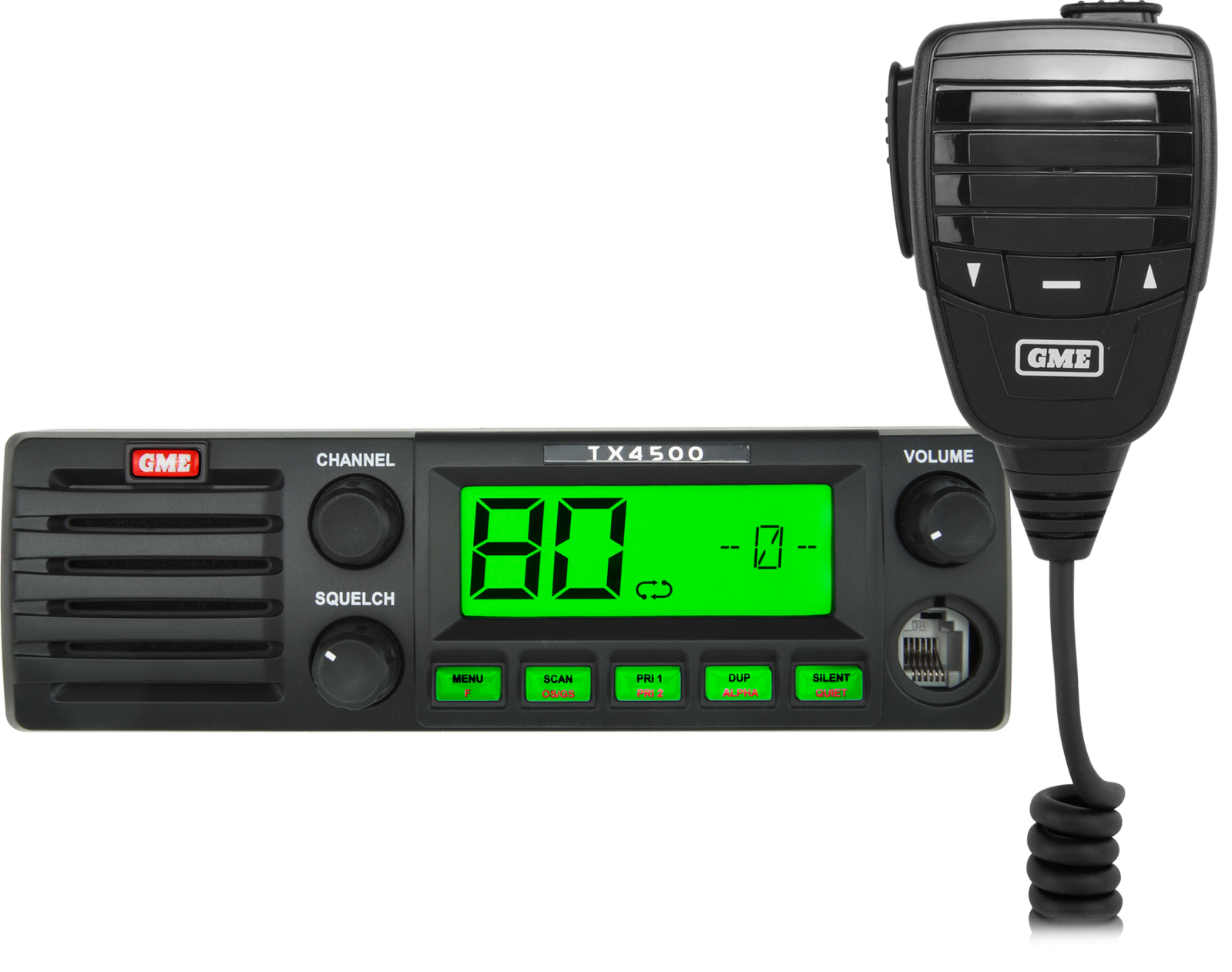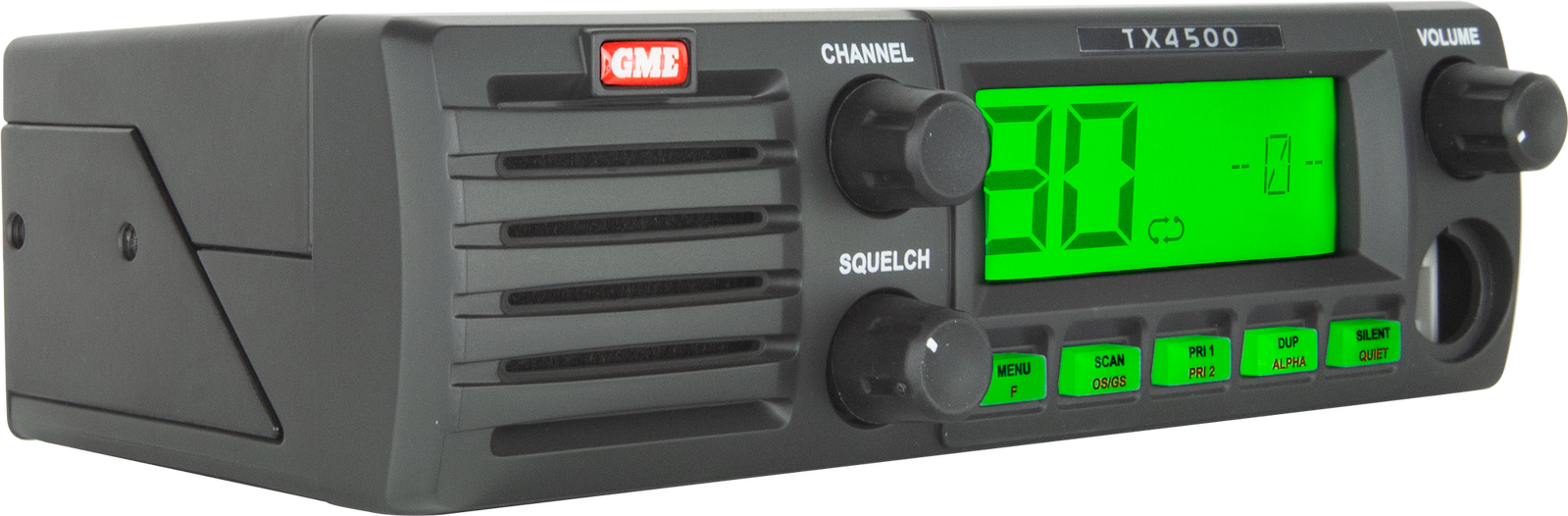 Featuring a rugged die-cast metal chassis and robust professional-grade microphone with magnetic mounting bracket, the TX4500S is the radio of choice for agricultural machinery, plant equipment and heavy vehicle operators.