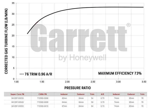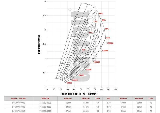 The GTW3884R Supercore is a direct drop in interchange with the T04S, and T04Z, or ANY turbocharger using a "P-Trim" Turbine Wheel.