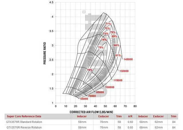 The GTX3576R GEN II is outline interchangeable with any existing GTX3576R T04 In/V-Band Out turbochargers. Supplied with Turbine Housing Oulet V-Band Clamp