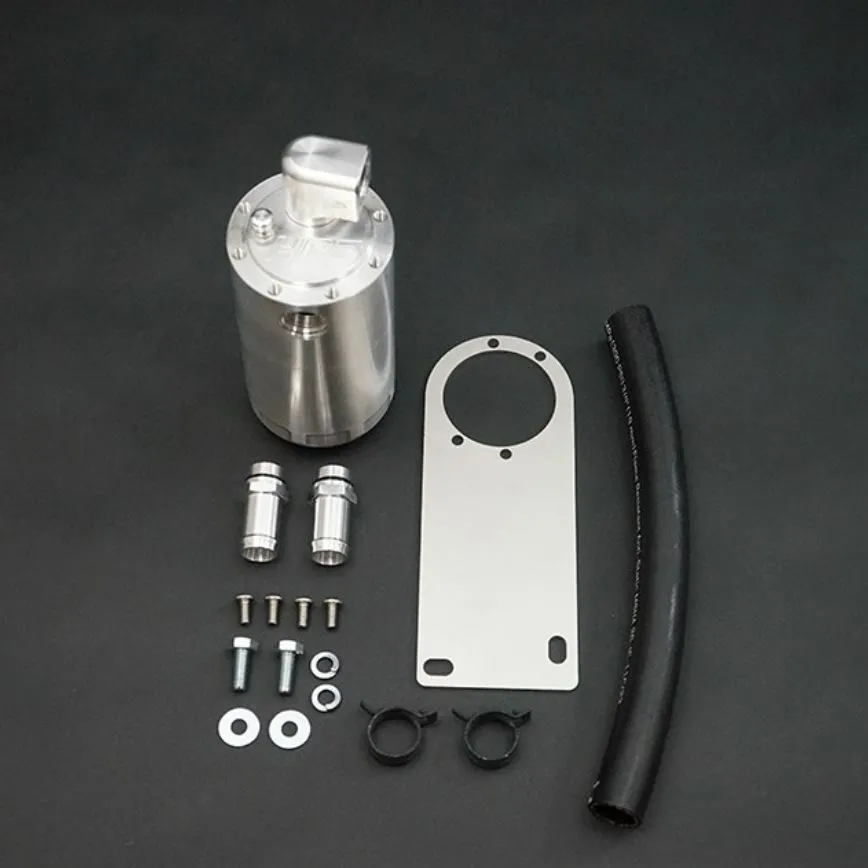 HPD’s oil catch can / oil separators come in universal and complete kits with all required stainless steel laser cut bracketry, correct size hose tail fitting, washable internal stainless mesh filters, cut to size oil resistant hosing, bolts, nuts, washer, spring clamps and installation instructions for each vehicle.