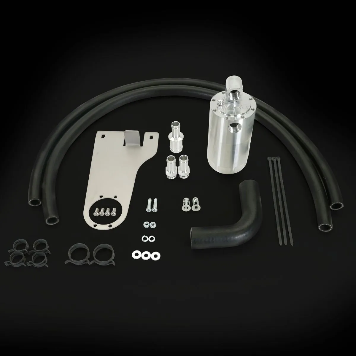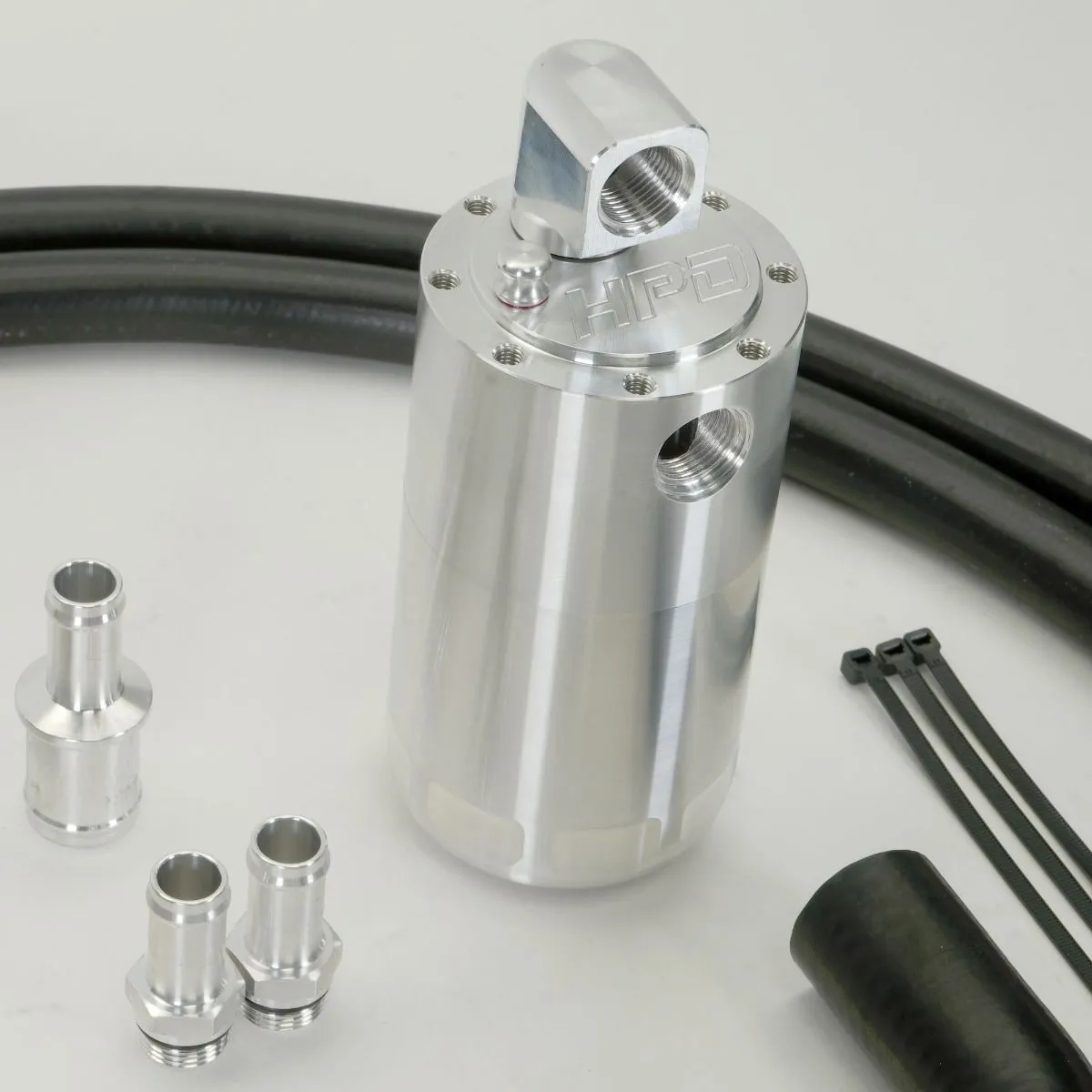 HPD diesel catch cans / oil air separators are one of the few on the market that do not vent harmful vapours into the atmosphere. This makes them fully compliant with all Australian emissions regulations and design rules in all states & territories. You won't have the hassle of buying and replacing filter cartridges on a HPD catch can. Our filtration system is fully cleanable. Inspections and maintenance is easy, with a convenient, neatly integrated alloy dipstick to instantly check bowl level. To empty, simply unscrew the bowl to remove and pour out captured fluids. Each catch can is supplied with oil resistant rubber hoses, clamps, laser-cut brackets and comprehensive fitting instructions for precise, factory-look fitment. Australian made HPD catch can / oil air separator kits are made to last. Only using the best materials and production technologies, every HPD catch can is precision-machined from high-grade solid billet aluminium. No expensive or time-consuming repairs from seals and gaskets failing due to excessive crank case pressures. HPD catch can / oil air separators don't develop excessive crank case pressure as our 8 layer stainless steel mesh filtration system does not clog up like paper or fabric cartridges of other systems. Our Catch Cans are not reliant on valves or bypasses that can commonly fail in real world applications. HPD catch cans / oil air separators prevent oil from entering the intake manifold and mixing with the carbon from the EGR system, clogging up vital components and potentially causing damage (see blocked intake manifold in image A). HPD direct-bolt on catch can / oil separator kits are ideal for 4WDs fitted with an intercooler or turbo kit and come complete with mounting brackets, rubber hoses and hose clamps. HPD catch cans significantly reduce oil vapour that can contaminate the intake system and therefore helps keep the intercooler clean (internally). This means your engine can receive optimum intake cooling, maintain efficiency and power delivery for longer. Modern 4WDs tend to have more complex parts in the intake manifold such as sensors and EGR (exhaust gas recirculation) valves that can malfunction due to the film of oil produced by vapour from the crankcase breather system. When the exhaust gas valve is commanded by the ECM (engine control module) to open and allow exhaust gasses back into the inlet sytem, these gasses contain small carbon particles (commonly known as soot) that fail to burn completely. These particles get deposited and stuck to surfaces coated with the film of oil and this process keeps repeating. Eventually, this process commonly causes intake manifold blockages, restricting air flow to the engine's cylinders, resulting in reduced performance, black smoke, increased engine wear and even engine failure as shown in intake manifold in image A. Reduces oil in intake system Allows intercooler to work efficiently Eliminates carbon & oil build up in inlet manifold Keeps inlet ports and valves clean Reduces engine wear Reduces exhaust smoke Maintains economy Keeps air and map sensors clean Maintains engine performance Billet Alluminum Catch can Internal stainless mesh filters Dipstick to check oil level Simply unscrew base to empty oil 16mm Screw in hose fittings Mounting brackets & hoses