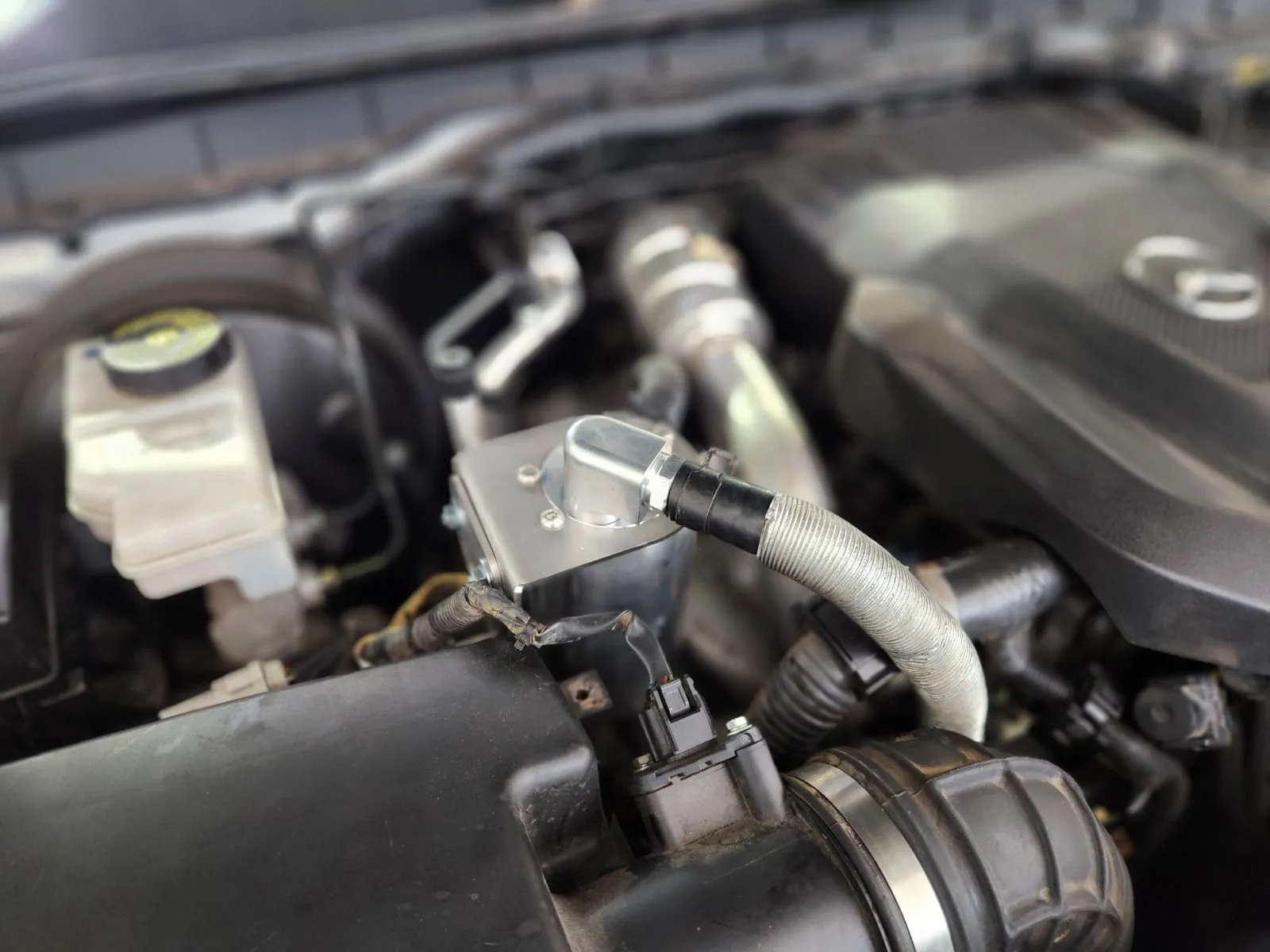 HPD diesel catch cans / oil air separators are one of the few on the market that do not vent harmful vapours into the atmosphere. This makes them fully compliant with all Australian emissions regulations and design rules in all states & territories. You won't have the hassle of buying and replacing filter cartridges on a HPD catch can. Our filtration system is fully cleanable. Inspections and maintenance is easy, with a convenient, neatly integrated alloy dipstick to instantly check bowl level. To empty, simply unscrew the bowl to remove and pour out captured fluids. Each catch can is supplied with oil resistant rubber hoses, clamps, laser-cut brackets and comprehensive fitting instructions for precise, factory-look fitment. Australian made HPD catch can / oil air separator kits are made to last. Only using the best materials and production technologies, every HPD catch can is precision-machined from high-grade solid billet aluminium. No expensive or time-consuming repairs from seals and gaskets failing due to excessive crank case pressures. HPD catch can / oil air separators don't develop excessive crank case pressure as our 8 layer stainless steel mesh filtration system does not clog up like paper or fabric cartridges of other systems. Our Catch Cans are not reliant on valves or bypasses that can commonly fail in real world applications. HPD catch cans / oil air separators prevent oil from entering the intake manifold and mixing with the carbon from the EGR system, clogging up vital components and potentially causing damage (see blocked intake manifold in image A). HPD direct-bolt on catch can / oil separator kits are ideal for 4WDs fitted with an intercooler or turbo kit and come complete with mounting brackets, rubber hoses and hose clamps. HPD catch cans significantly reduce oil vapour that can contaminate the intake system and therefore helps keep the intercooler clean (internally). This means your engine can receive optimum intake cooling, maintain efficiency and power delivery for longer. Modern 4WDs tend to have more complex parts in the intake manifold such as sensors and EGR (exhaust gas recirculation) valves that can malfunction due to the film of oil produced by vapour from the crankcase breather system. When the exhaust gas valve is commanded by the ECM (engine control module) to open and allow exhaust gasses back into the inlet sytem, these gasses contain small carbon particles (commonly known as soot) that fail to burn completely. These particles get deposited and stuck to surfaces coated with the film of oil and this process keeps repeating. Eventually, this process commonly causes intake manifold blockages, restricting air flow to the engine's cylinders, resulting in reduced performance, black smoke, increased engine wear and even engine failure as shown in intake manifold in image A. Reduces oil in intake system Allows intercooler to work efficiently Eliminates carbon & oil build up in inlet manifold Keeps inlet ports and valves clean Reduces engine wear Reduces exhaust smoke Maintains economy Keeps air and map sensors clean Maintains engine performance Billet Alluminum Catch can Internal stainless mesh filters Dipstick to check oil level Simply unscrew base to empty oil 16mm Screw in hose fittings Mounting brackets & hoses