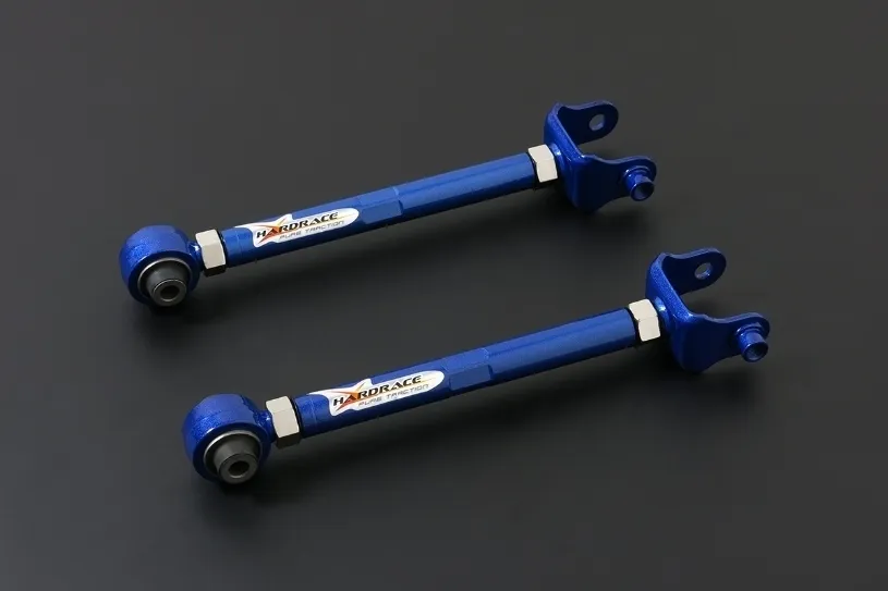 Hardrace toe Arms allow for fine-tuned adjustments to the Rear toe in/out setting of the vehicle. It helps to Increase straight line stability and road control. Hardrace toe Arms made with high-strength steel alloys to offer high durability, strength and yet remain light-weight.