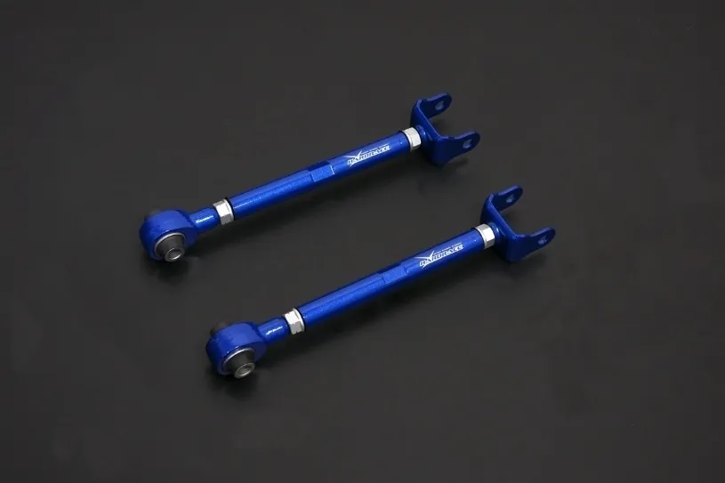 Hardrace toe Arms allow for fine-tuned adjustments to the Rear toe in/out setting of the vehicle. It helps to Increase straight line stability and road control. Hardrace toe Arms made with high-strength steel alloys to offer high durability, strength and yet remain light-weight.