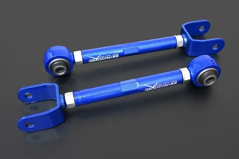 Hardrace toe Arms allow for fine-tuned adjustments to the Rear toe in/out setting of the vehicle. It helps to Increase straight line stability and road control. Hardrace toe Arms made with high-strength steel alloys to offer high durability, strength and yet remain light-weight.