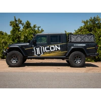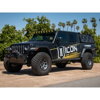 The Stage 7 ICON 2.5 Suspension System for the Jeep Gladiator is the ideal setup for drastically improving off-road performance and overall ride quality for the application that will see frequent heavy off-road use. This complete suspension system features ICONs proven 2.5 Series shocks, 2.5 lift dual-rate front coil springs, tubular steel fixed lower and adjustable upper front links, billet front sway bar links, a triple-rate rear coil spring kit, billet aluminum adjustable upper and lower rear links, a rear sway bar relocation kit, front and rear adjustable track bars, and all necessary hardware for install. This system provides an increase of over 30% front and 20% rear wheel travel and was designed around the use of a 35 tire. For those looking to run a 37 tire this can be achieved with the ICON Jeep JT Bump Stop Spacer Kit (Part #22071).