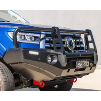 Perfect for work and play, the Deluxe Bull Bar features a triple hoop design that provides optimal protection. The inclusion of a 12,000lb winch-ready cradle means you can equip your 4WD for the most unexpected events. The Deluxe bar is also driving light, light bar, and UHF ready. Optional side rails and steps can be integrated seamlessly, while rated recovery points and under-body protection panels are also available for those who really know what they are doing!