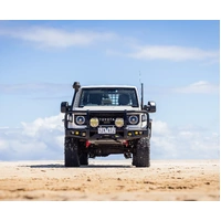 The latest in bull bar designs includes a pod for optional cube fog, driving and turn park lights, to finish off the modern look.