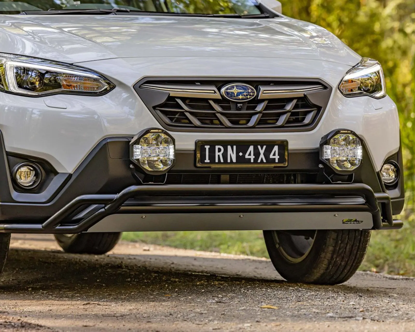 • Front Bumper Guard & Skid Plate Kit: Included skid plate kit offers extra protection on and off-road from rocks and debris. On snowy roads, this helps prevent snow buildup underneath your Subaru XV. The stylish tube design matches the front contours and styling of the Subaru XV providing a clean modern look.