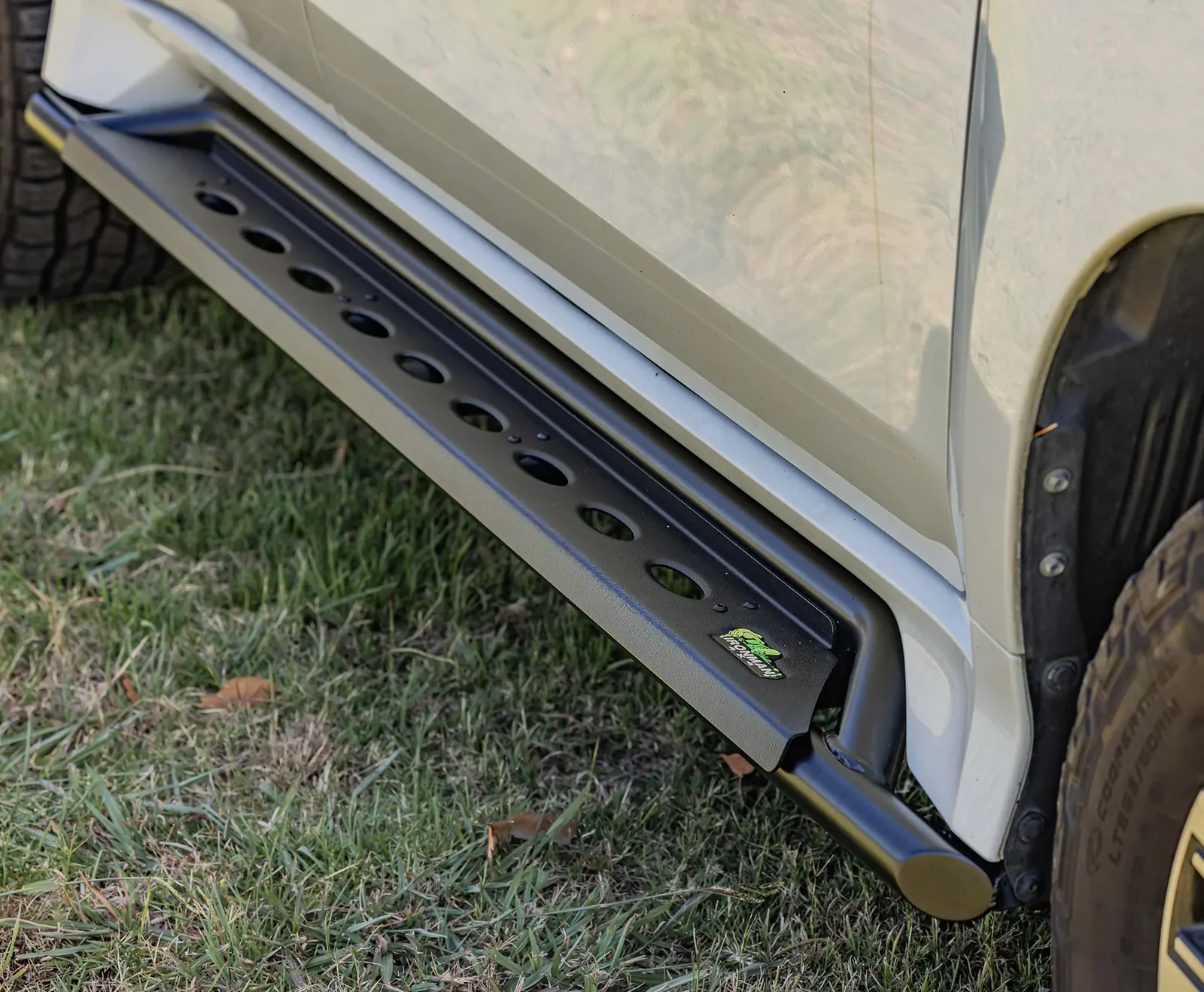 The modern, slip-resistant, and durable textured powder coat finish provides a heavy-duty aftermarket alternative to the manufacturer's standard side steps or running boards.