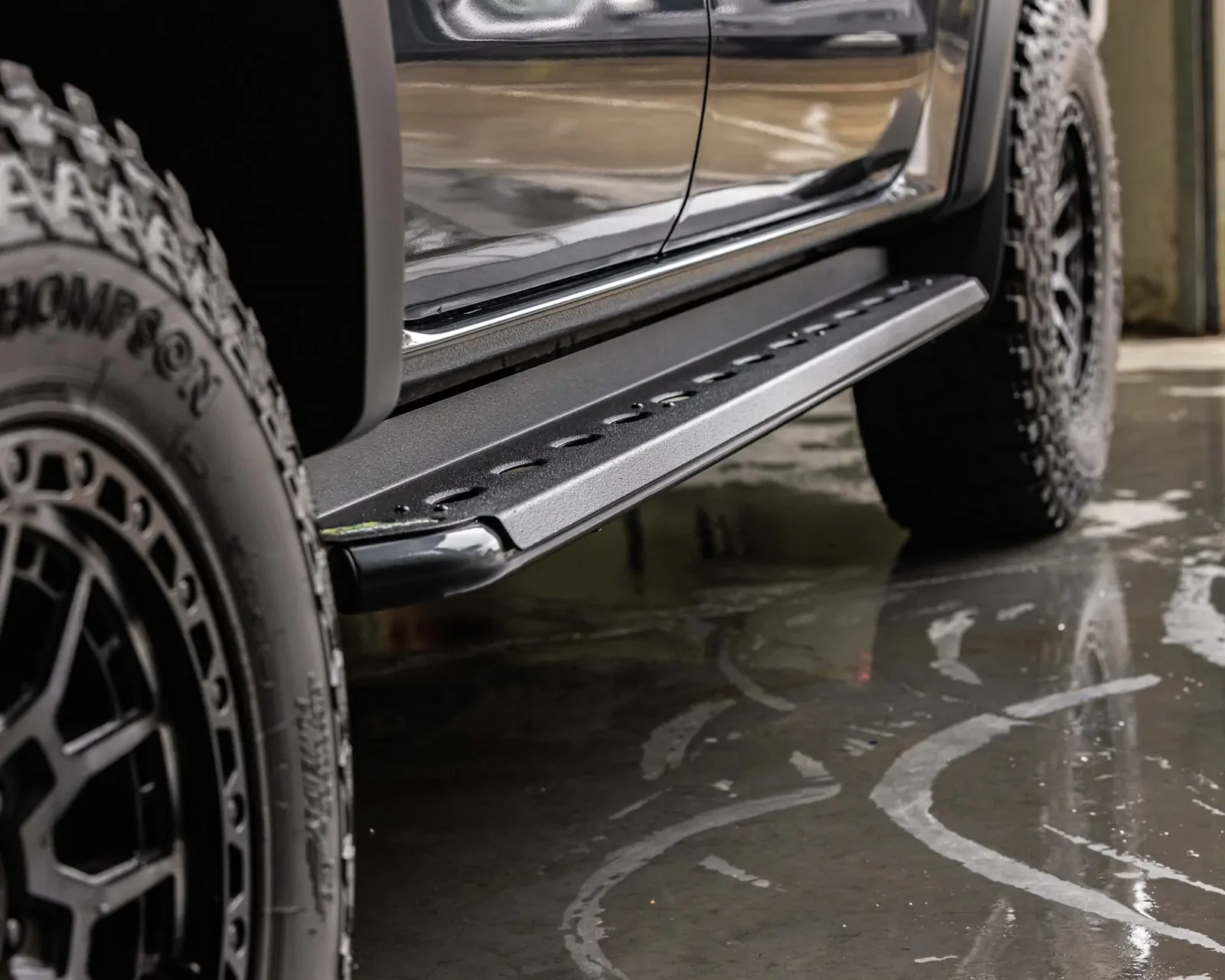 The modern, slip-resistant, and durable textured powder coat finish provides a heavy-duty aftermarket alternative to the manufacturer's standard side steps or running boards.