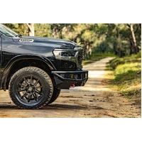 The Raid Bull Bar to suit Ram 1500 DT, has a sleek low-profile design, offers robust steel strength with an integrated 4mm steel front skid plate and 2 x 5-tonne recovery points as standard! The list of standard inclusions continues with a chassis-mounted winch cradle, provision for a 32” lightbar and up to 4 cube lights means this bar is ready for your next off-road adventure.