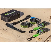 Handy for when you need to strap down your gear, the Ratchet Tie Down Kit includes two straps with PVC-coated S hooks and quick-release latch for securing to your tie down points. Additionally, the included soft loops can be used to extend the ratchet strap or provide a soft tie down point around roof racks, motorbikes, axles and more.